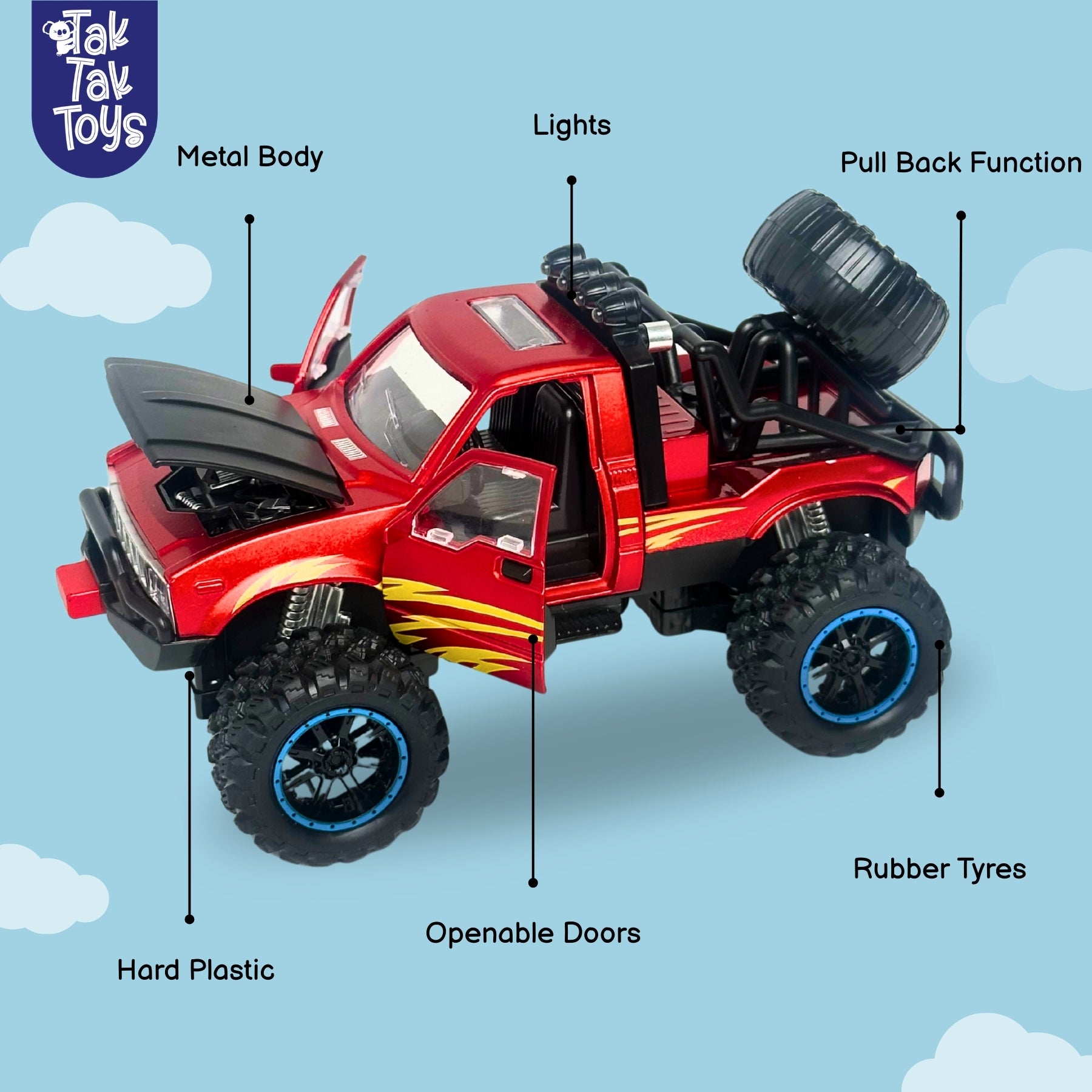 Tak Tak Toys 1:24 Die-Cast Off-Road Monster Car Toy Vehicle with Lights, Sound & Openable Doors, Pull Back Action Car With Metal Body, Ideal for Boys & Girls, Perfect Gift for Kids Age 3+