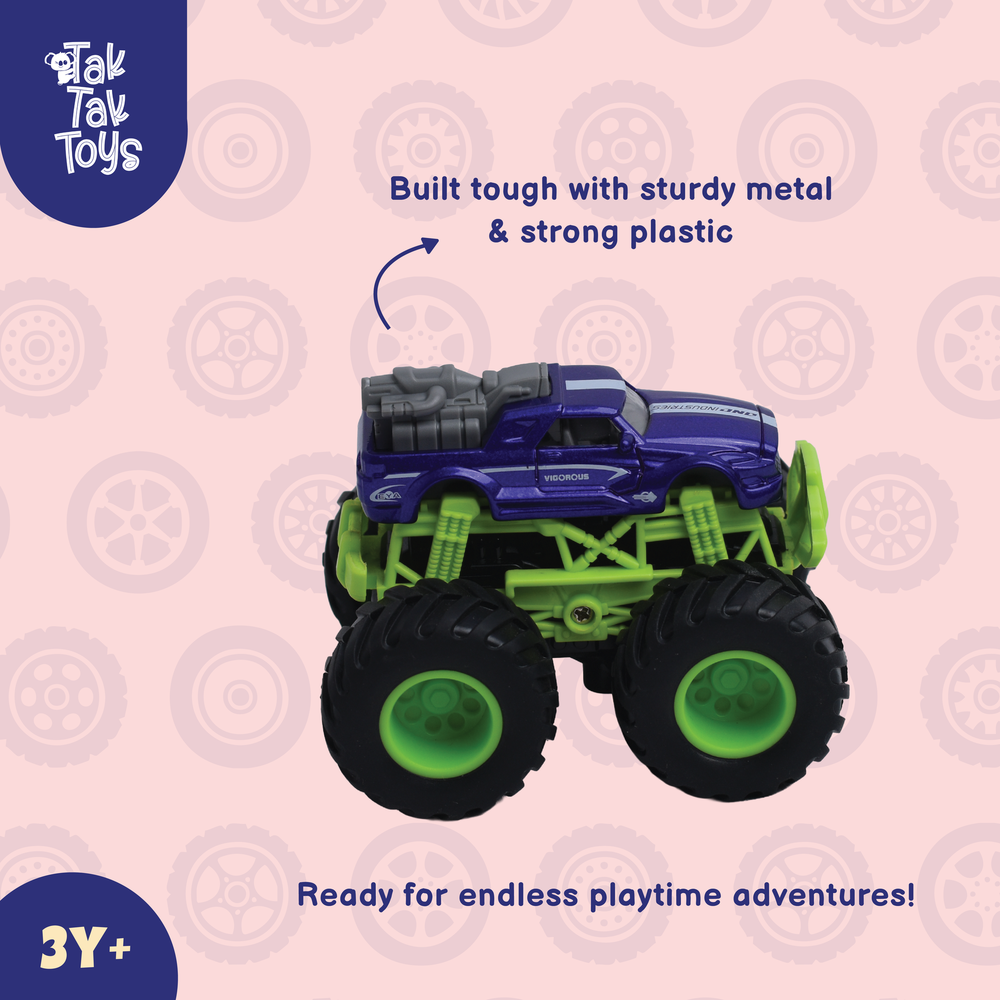 Tak Tak Toys 1:64 Die-Cast Turbo Truck Toy Monster Car for Kids, Monster Truck with Big Wheels, Pull Back Action Car Vehicle With Metal Body, Ideal for Boys & Girls, Perfect Gift for Kids Age 3+ (MultiColor)