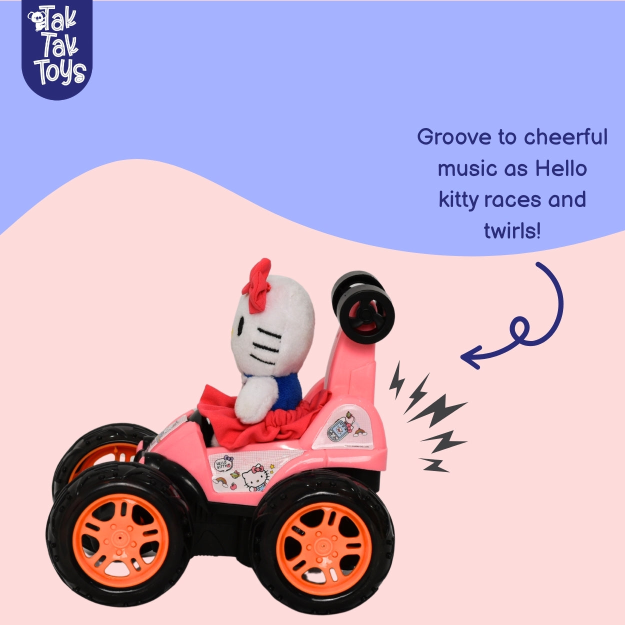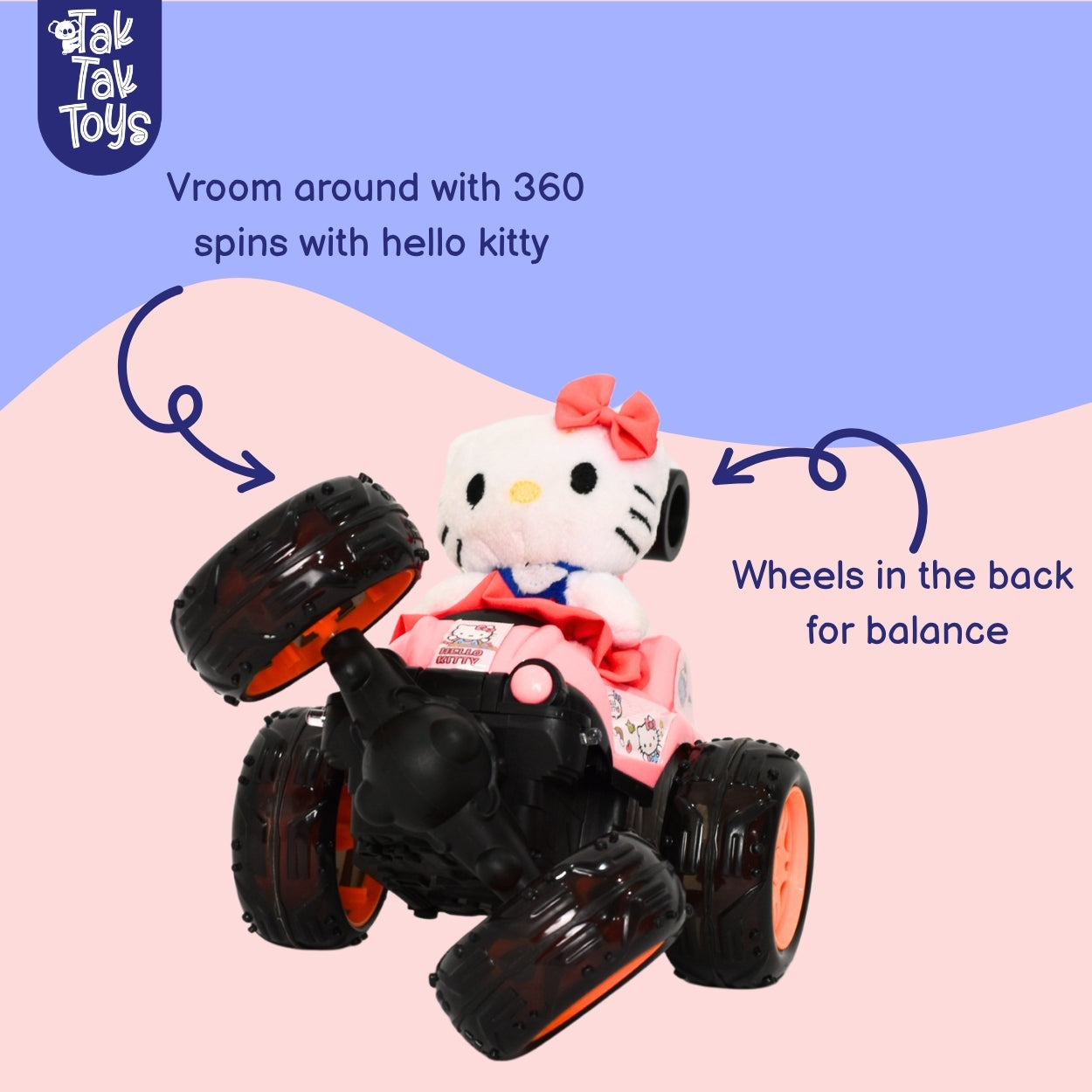 - 360° Rotating Stunt Car – Performs spins, flips, and fun tricks. Cute Hello Kitty Design – Attractive for both boys & girls.