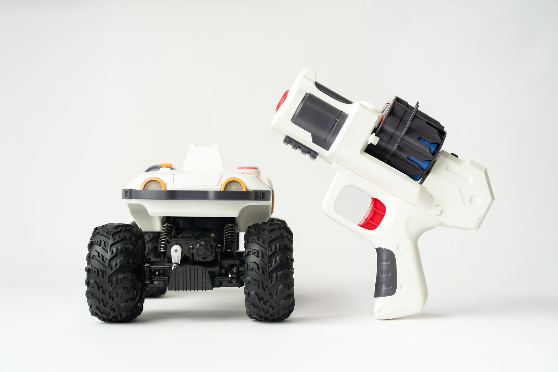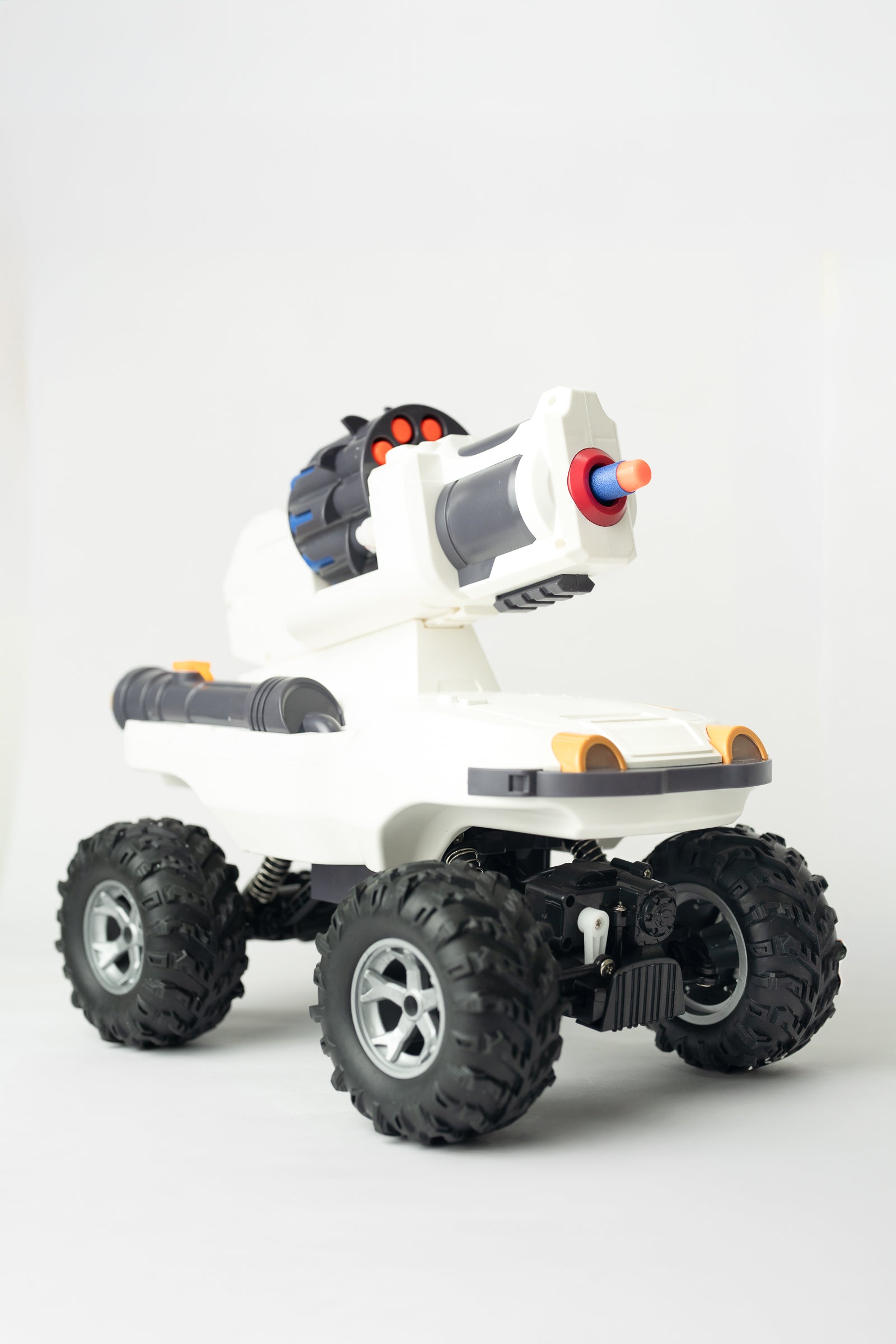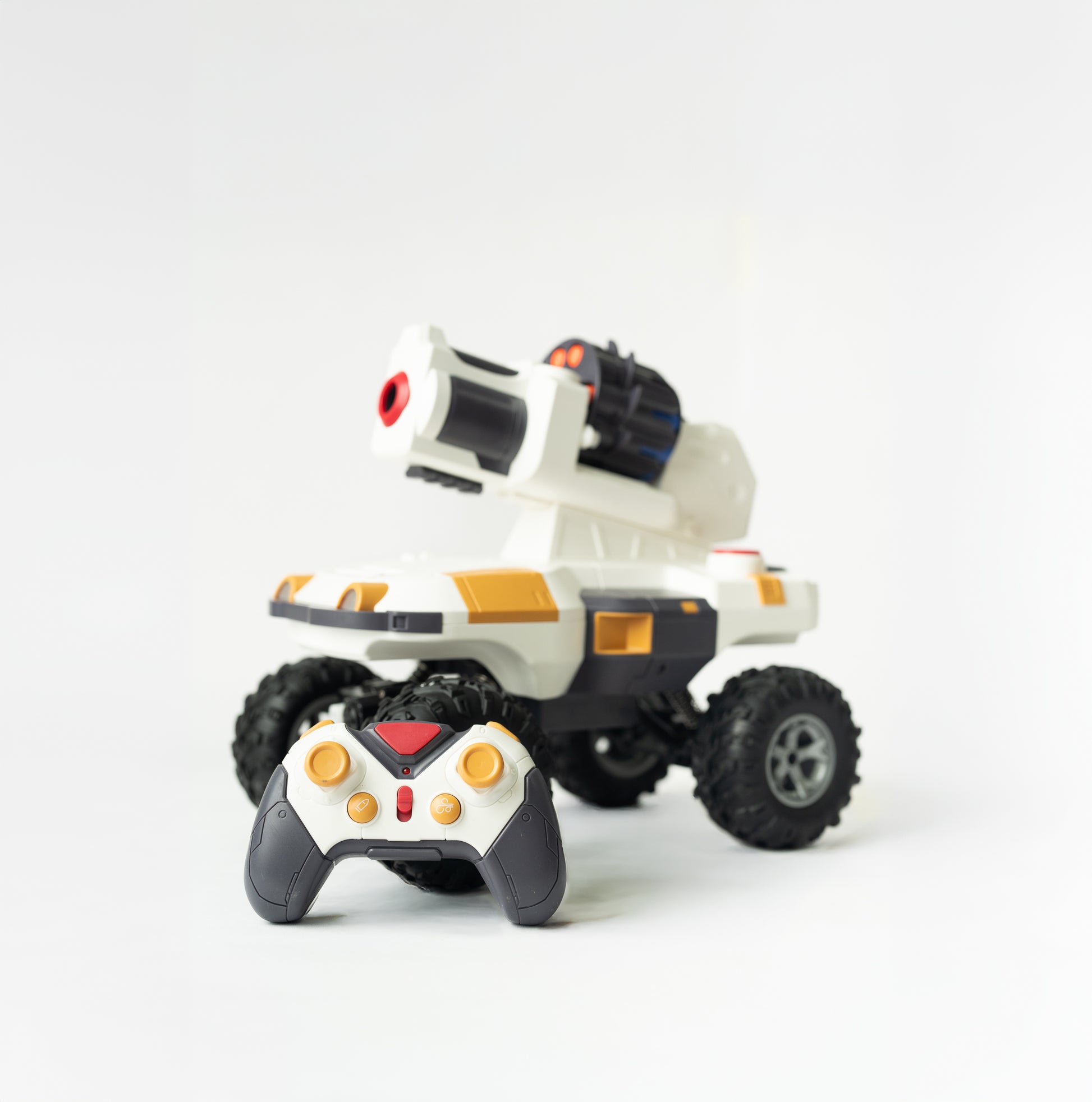 Your Child’s Portal to Galactic Adventures! Embark on interstellar expeditions with the Lunar Ranger, the ultimate remote-controlled tank for young astronauts. This robust RC tank comes equipped with a detachable cannon that doubles as a handheld gun, providing dynamic play scenarios on or off its wheels. Whether patrolling the rugged terrains or engaging in an epic space battle, the Lunar Ranger promises endless fun with its durable design and easy-to-operate controls. Perfect for indoor and outdoor missions, this toy is designed to spark imagination and encourage active play among young space explorers.