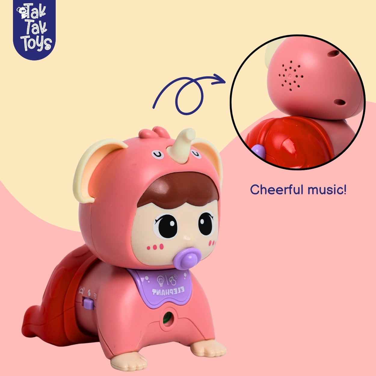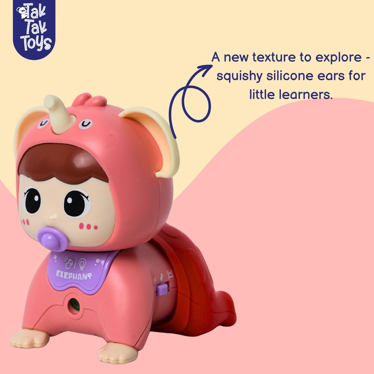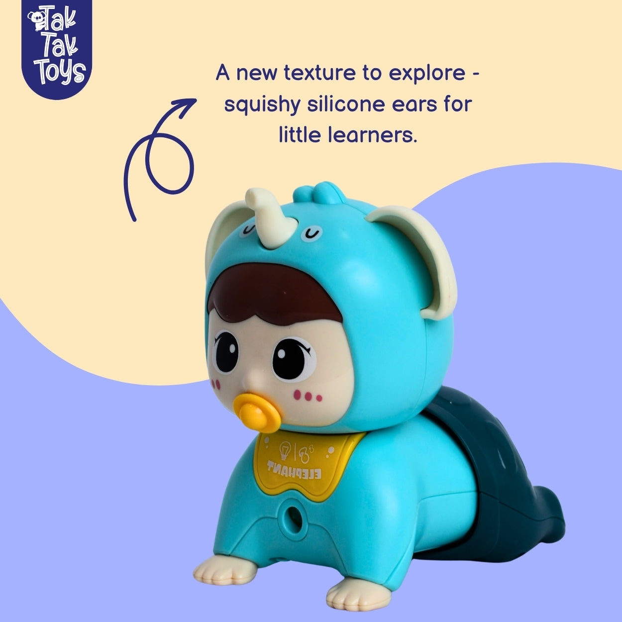 Tak Tak Toys Nubo Crawling Pal with Light & Sound | Interactive Elephant Costume Baby Toy | Crawling Doll for Kids | Age 6 Months+