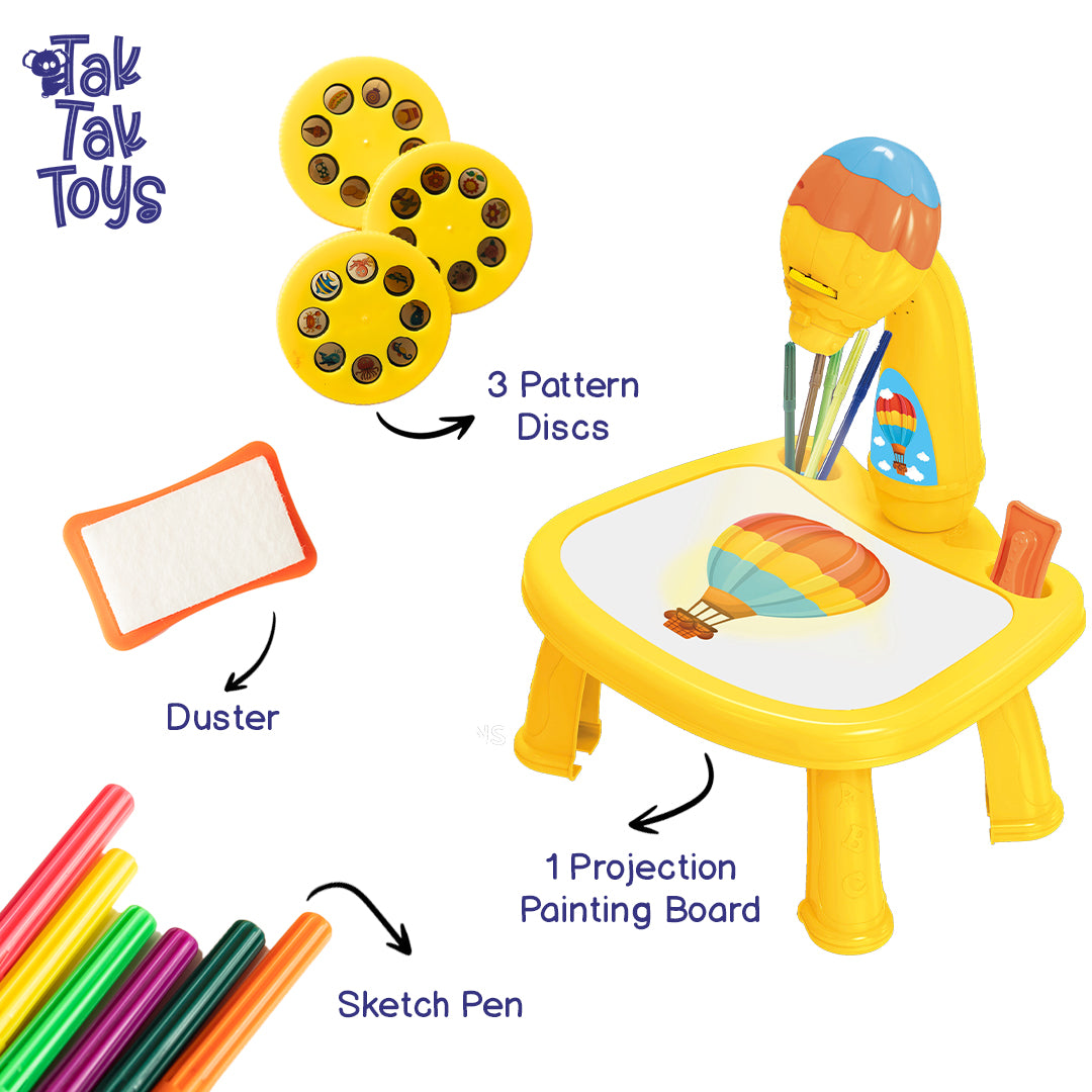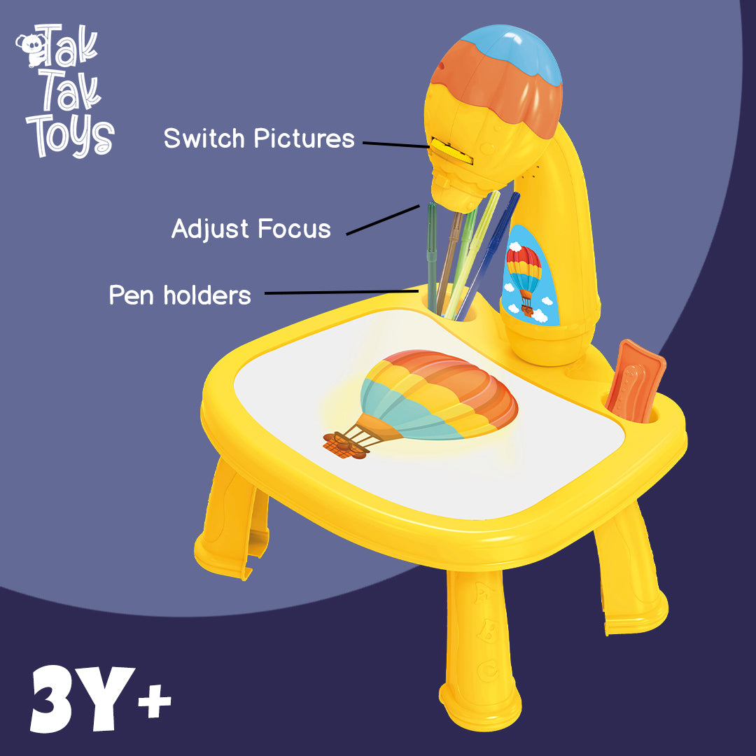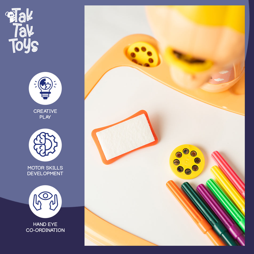 Unleash your child’s inner artist with the Tak Tak Toys Paint Projector! This innovative toy projects 24 fun and engaging drawings for your child to trace and color. Included color pens make it ready to play right out of the box. It’s not just about fun—this creative play enhances hand-eye coordination and cognitive abilities, making it a perfect blend of learning and playtime.
