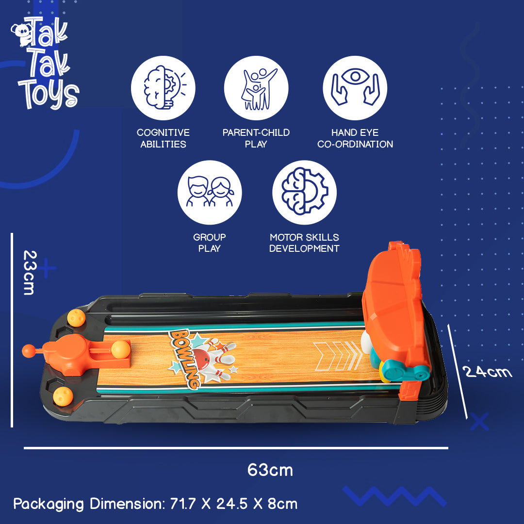 Bring the excitement of the bowling alley to your home with the Strike Mania Bowling Game! Designed for both solo and multiplayer fun, this compact set includes a mechanical pin-setter for easy reset and consistent play. It's perfect for children looking to develop their hand-eye coordination and motor skills, all while enjoying endless hours of bowling fun right in their living room. Enjoy perfect strikes and laughter with every roll with Strike Mania!